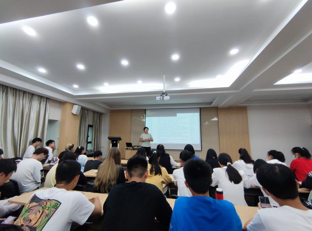 在J9-433报告厅举办“科创竞赛经验分享交流会”,统计系教师邓立凤及张宇航、朱诺飞、田博、王涵笑等四名经验丰富的同学受邀为同学们进行竞赛指导与分享。