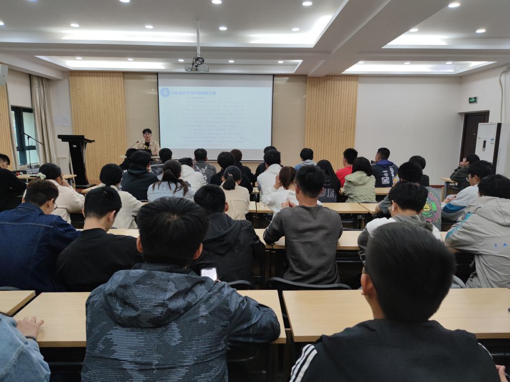 在J9-433会议室成功举办育苗计划项目中期推进会暨山东省大学生科技创新竞赛动员会,会议由辅导员代佳庆主持。