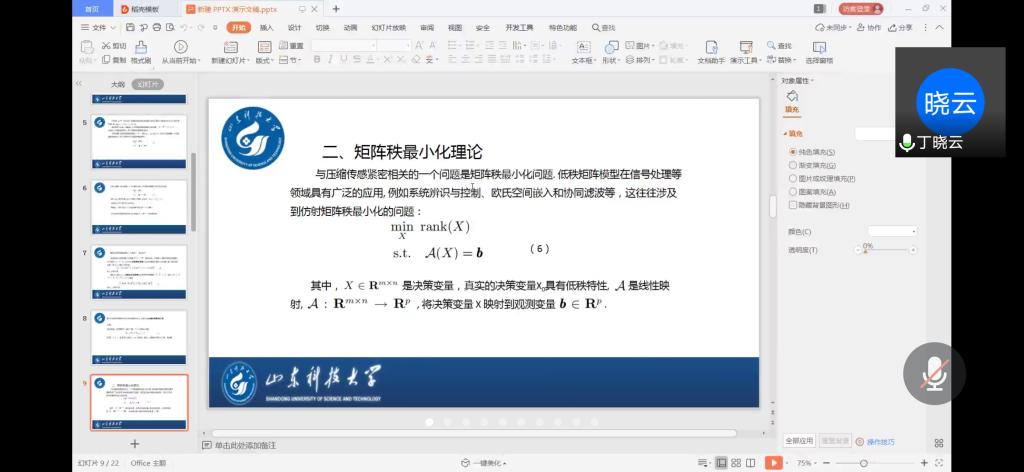 2019级应用数学硕士丁晓云作了题为《从压缩传感到低秩矩阵恢复:理论与应用》的报告。本次讲坛邀请的点评嘉宾是91快活林