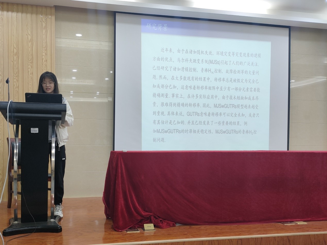 2020级数学专业硕士魏雪雪作了题为“具有一般不确定转移率的伊藤型随机马尔科夫跳变系统的有限时间稳定和镇定”的报告。本次点评嘉宾是91快活林