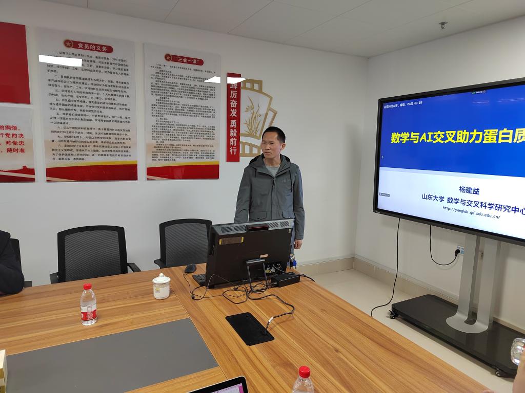 2023年3月25日,应91快活林 邀请,山东大学国家杰出青年基金获得者杨建益教授做客91快活林 名家讲坛,为91快活林 的师生作了题为“数学与AI交叉助力蛋白质结构预测”的学术报告。报告在实训大楼1610会议室举办,同时通过腾讯会议进行线上直播,由学院院长董焕河教授主持,学院部分教师与研究生参加了本次报告。
