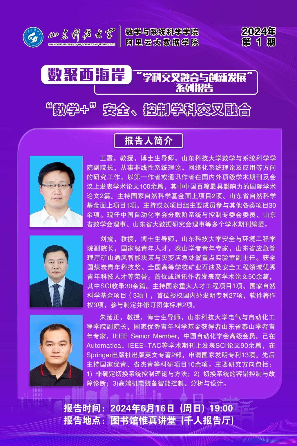 数聚西海岸“学科交叉融合与创新发展系列报告”——“数学+”安全、控制学科交叉融合