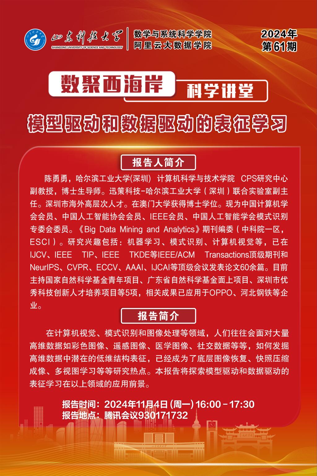 数聚91快活林 2024年第61期:陈勇勇学术报告