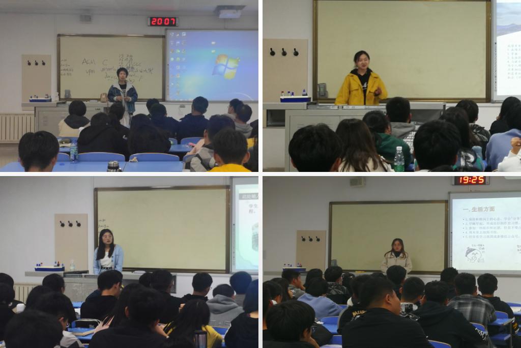 学生党员从学习方法、科技竞赛、社会实践及文体活动等方面为学弟学妹们分享了他们在大学生活的心得体会,并鼓励引导同学们对自己的未来有长远规划并积极准备。