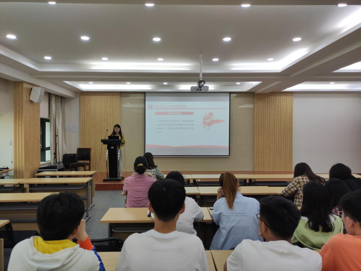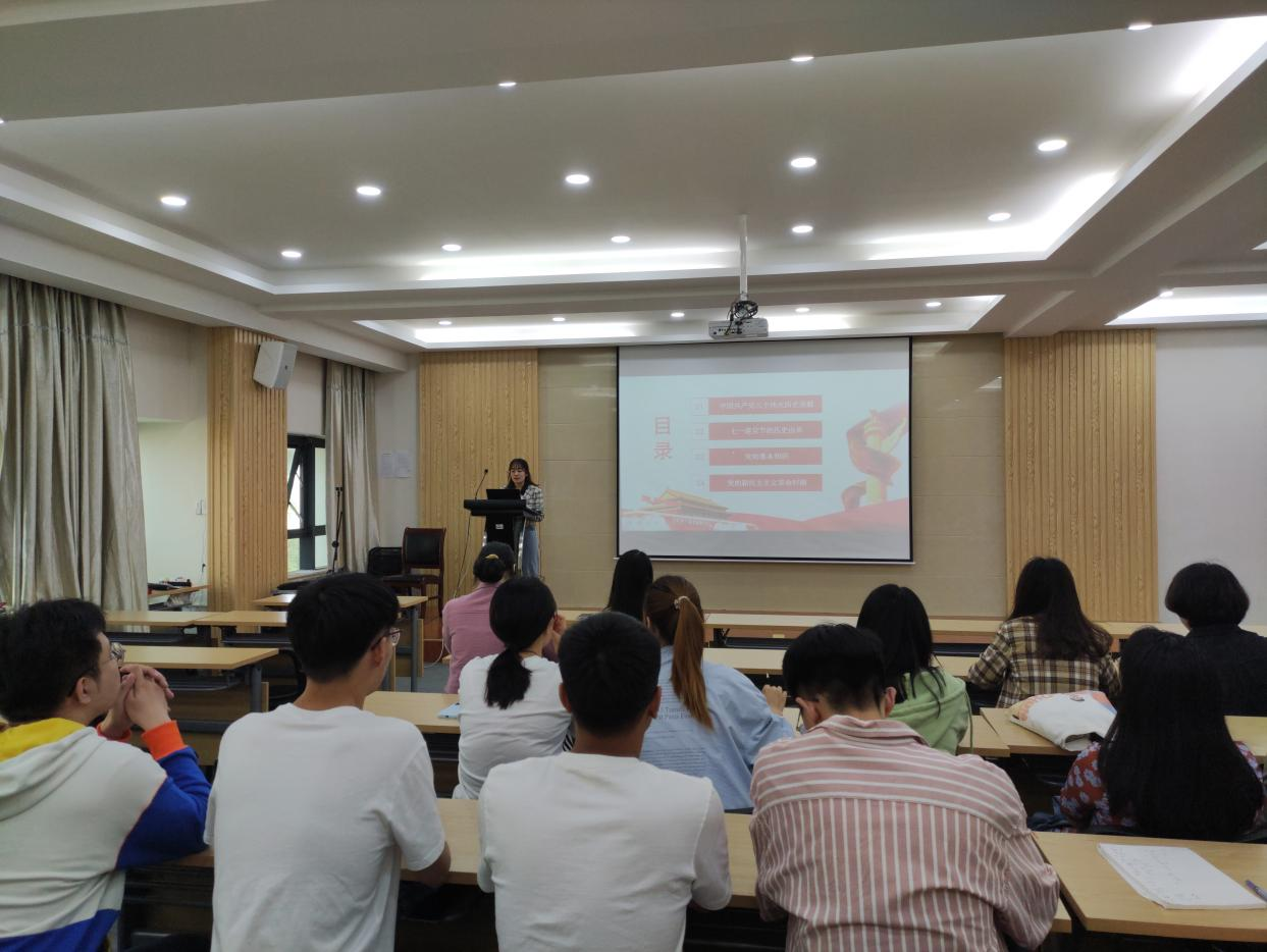 白国威以“重温党的历史,坚定理想信念”为主题,分别从党的社会主义革命和建设时期、改革开放和社会主义现代化建设新时期两个阶段阐述了党的非凡奋斗历程,讲述了中国共产党百年历史中总结的宝贵经验,她呼吁同学们,作为青年党员的我们要继续传承和弘扬中国共产党精神谱系,让青春在为祖国为民族为人民为人类的不懈奋斗中绽放绚丽之花。