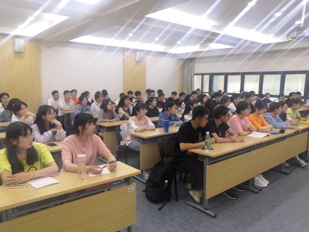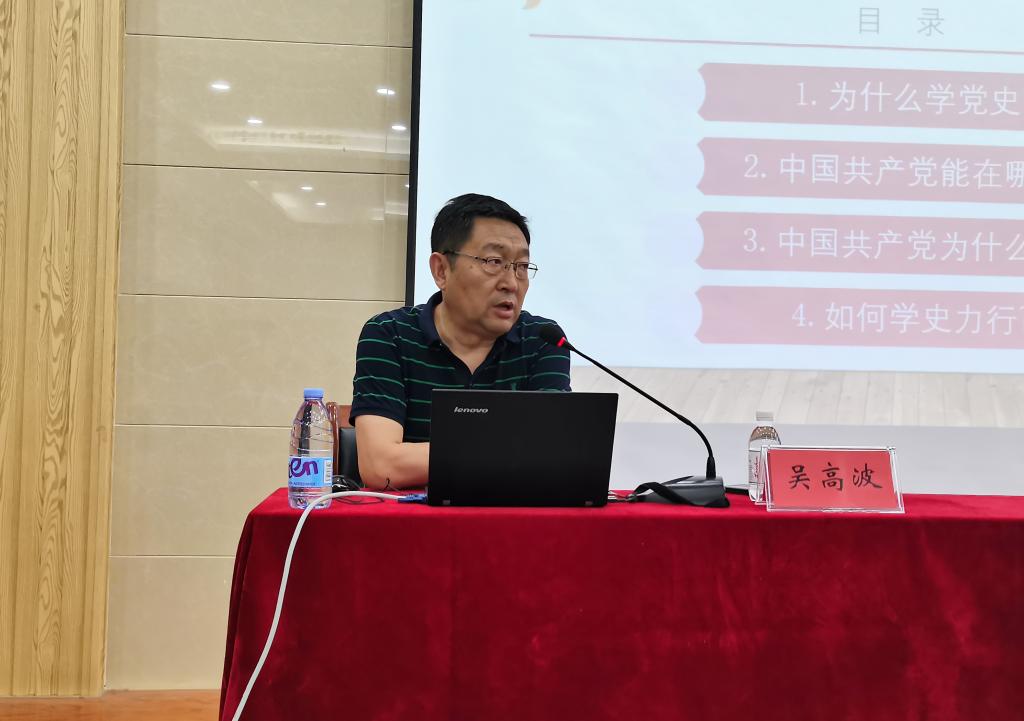 吴高波从习近平总书记在党史学习教育动员大会上的讲话开始讲起,明确了学史明理、学史增信、学史崇德、学史力行的具体要求。随后,他通过“为什么学党史”、“中国共产党能在那里”、“中国共产党为什么能”及“如何学史力行”等四个方面进行解读,从历史的视角,回顾了中国人民的艰难抗战历程,让同学们深刻了解新中国来之不易,中国特色社会主义来之不易,深刻认识到中国共产党为什么能,马克思主义为什么行,中国特色社会主义为什么好。他强调,作为新时代大学生,要不断坚定“四个自信”,不断增强历史定力,用党的奋斗历程鼓舞斗志,用党的优良作风坚定信念,肩负起时代赋予青春领路人的责任和使命。