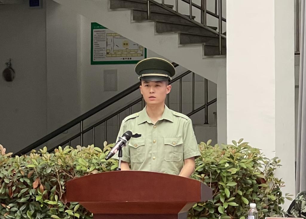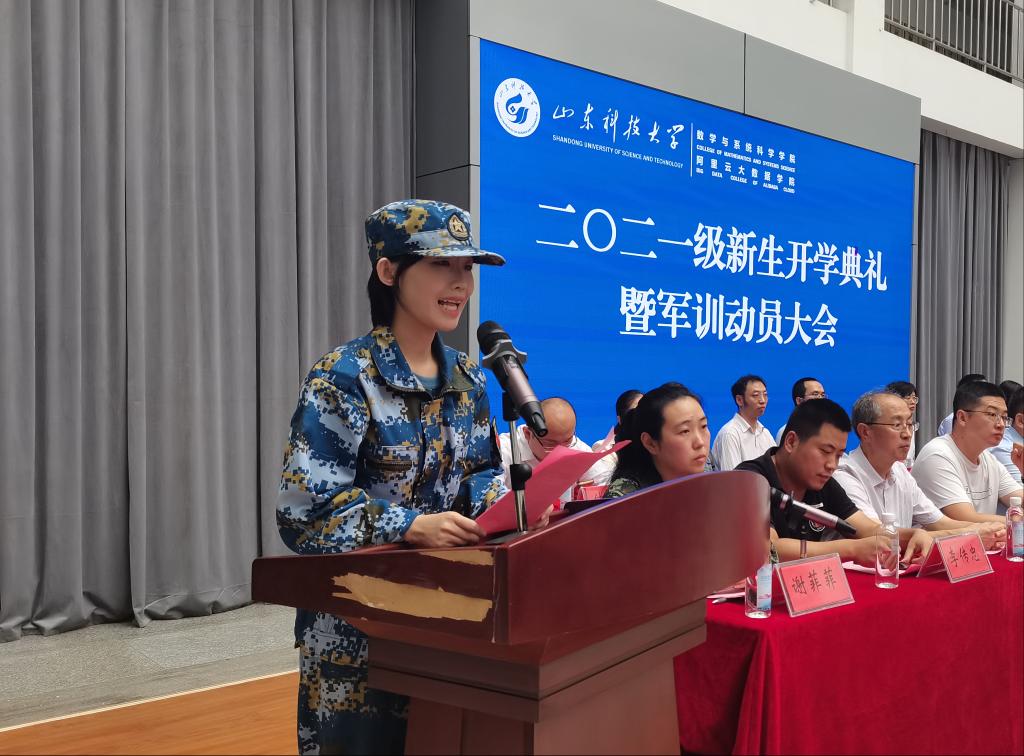 在军训动员大会上,2018级数学与应用数学专业退役复学学生商光先上台发言,他分享了自己在部队期间的成长与感悟,“宝剑锋从磨砺出,梅花香自苦寒来。没有挑战的人生是不完美的,没有考验的生活是不完整的”,他希望同学们能在接下来的军训中勇于坚持,奋力拼搏,不给自己的大学生活与人生留下遗憾。