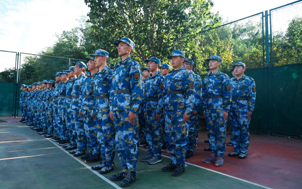 军训是每一个大学生必修的课程,也是同学们磨练意志、提高素质、加强自我管理的一门人生课程。相信同学们能够奋发图强、坚持不懈,取得优异的军训成绩,树立良好的生活习惯与学习态度,铸就美好未来。(通讯员:盖康 摄影:刘俊豪 郭亭斐)