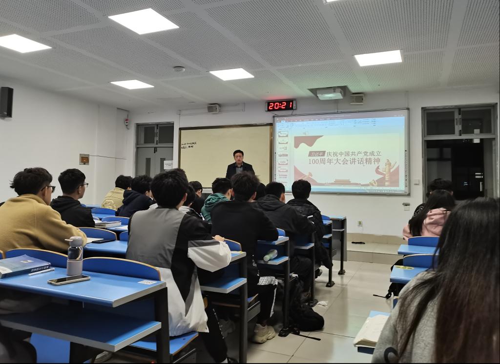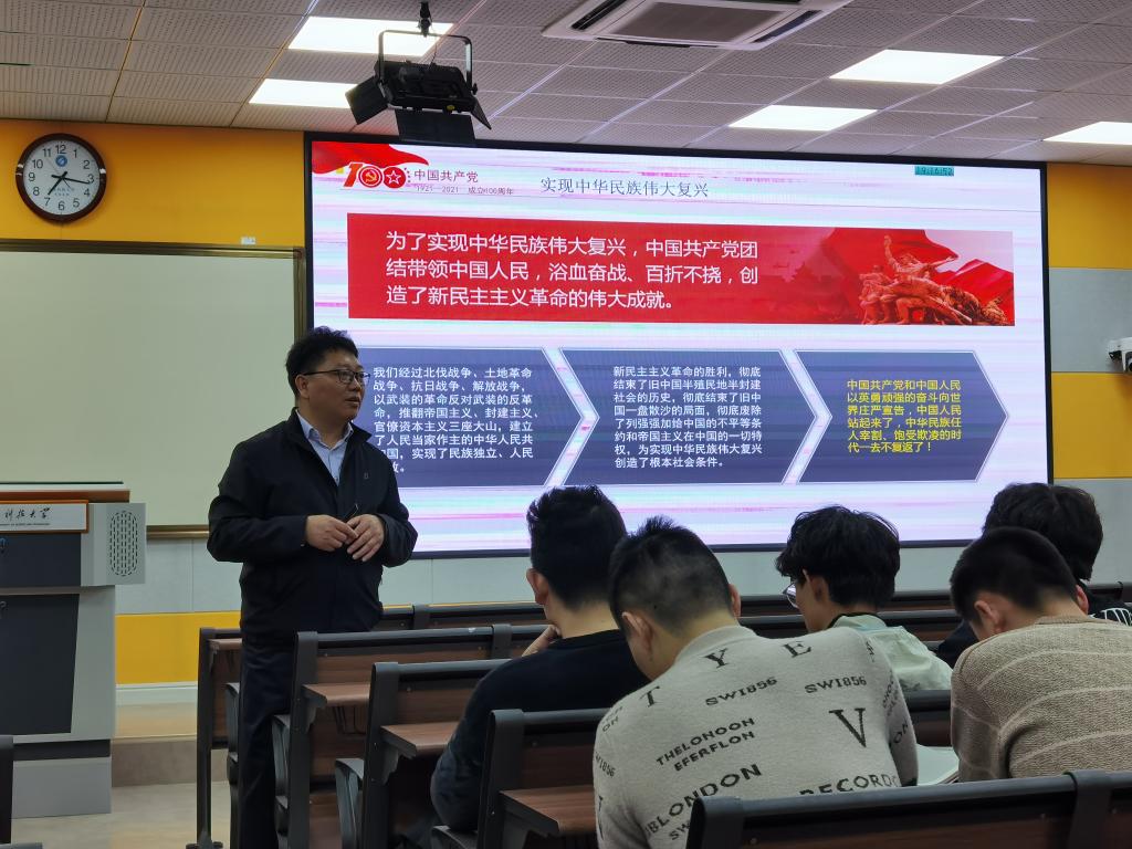 他们以习近平总书记在庆祝中国共产党成立100周年大会上的重要讲话精神为切入点,围绕中国共产党的百年奋斗史,通过生动鲜活的案例深入浅出地为同学们介绍了中国共产党如何领导中国人民走出了一条从站起来、富起来到强起来的中国道路,创造了让世界惊叹的中国奇迹,鼓励引导同学们从党的奋斗历程中更加清晰地了解到中国共产党人的初心和使命,激励青年学子立足实际、志存高远,争做敢于有梦、勇于追梦、勤于圆梦的有为青年。