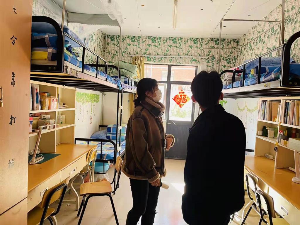 在学生公寓,辅导员与同学们亲切交谈,提醒同学们要遵守校园安全管理规章制度,坚持做好疫情防控工作,自觉维护宿舍安全、保持宿舍卫生整洁,积极营造安全、文明、健康、舒适的学习生活环境,携手共建文明校园。(通讯员:段雅君 谢菲菲)