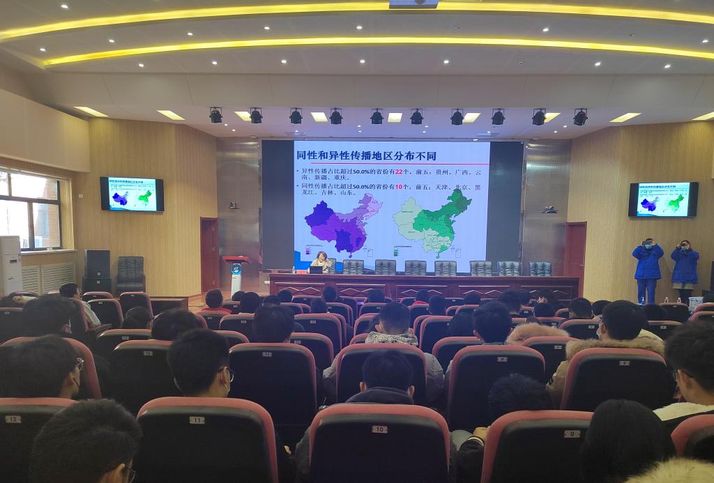 房艳春结合临床案例从艾滋病的危害、防治现状、传播途径及预防措等方面进行讲解和警示教育宣传,并以图文并茂、真实生动的案例分析等形式使同学们更加深刻地认识到艾滋病的危害及强化艾滋病宣传教育的紧迫性,进一步提高了广大青年学生对艾滋病等传染病的防范意识。在互动环节中,同学们积极踊跃举手发言,通过互动问答方式进一步加深了对预防艾滋病相关知识的理解和认识,讲座开始前,还现场发放预防艾滋病知识宣传手册。