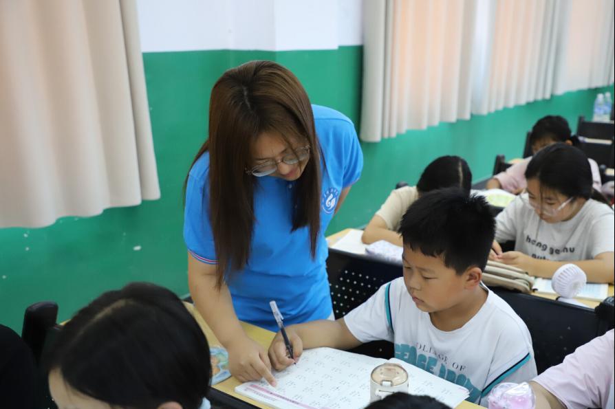 针对基础学业,志愿者们根据不同年级分组教学,从语文课文到数学公式,耐心讲解知识点,纠正学习习惯,助力孩子们打牢基础。