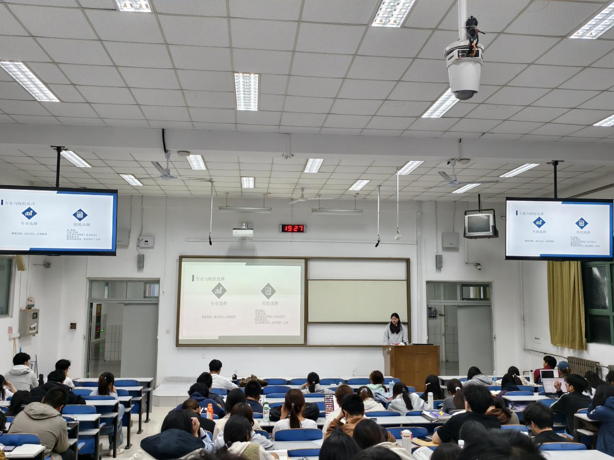 陈立宁同学结合自身考研经历进行交流,主要讲解考研院校专业选择的小技巧,分享各科目的复习节奏、学习方法和资料选择建议。同时,她还分享了备考期间时间安排与心态调整的小经验,解答了大家在备考中容易遇到的问题,给出实用的学习建议。