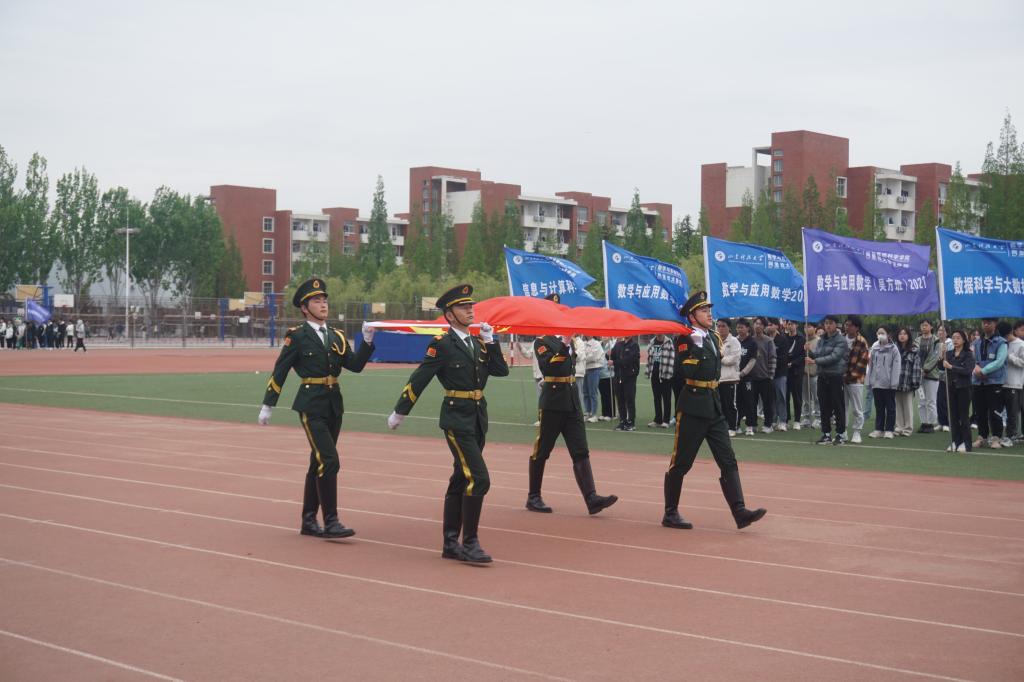 艳阳高照下的体育场,师生欢腾,热闹非凡。伴随着激昂的运动员进行曲,国旗护卫队、各代表队方阵阔步前进,依次入场,他们步伐整齐、口号嘹亮、英姿飒爽,以不同形式展示各班级特色,展现出数院学子团结拼搏、昂扬进取的精神风貌。