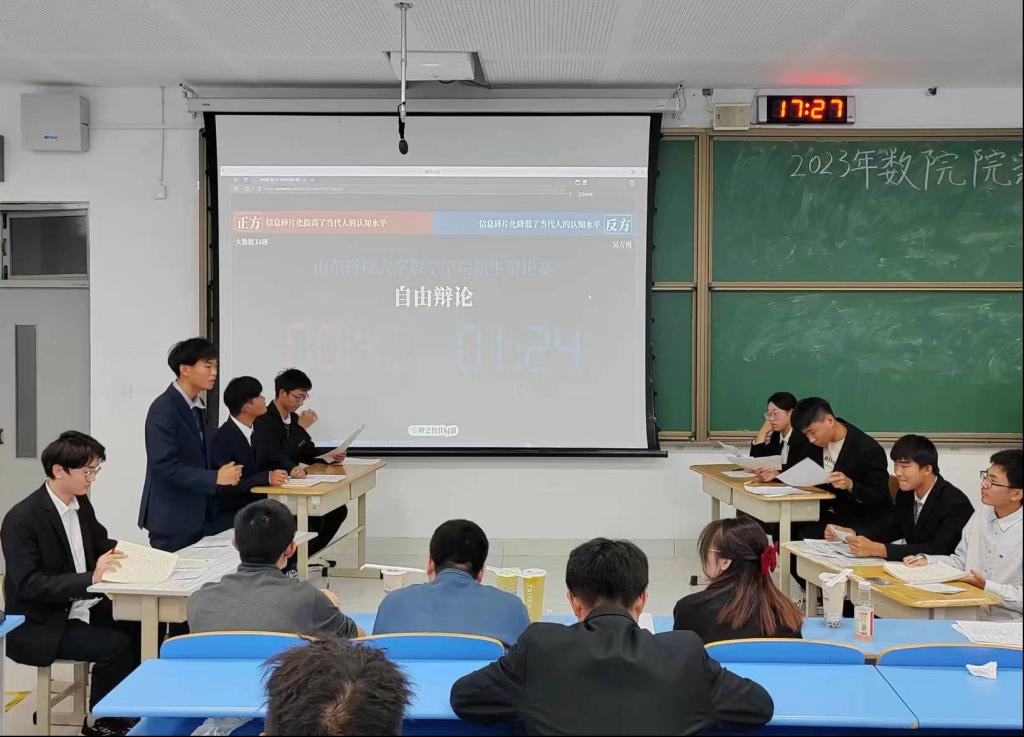 在J7-203举办第四届新生辩论赛决赛,2023级学生积极参与其中。