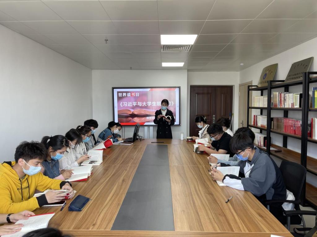 “青马工程”基础班的学员相约共读《习近平与大学生朋友们》一书,学院团委书记谢菲菲参加活动。