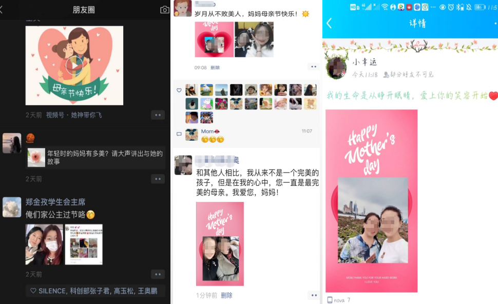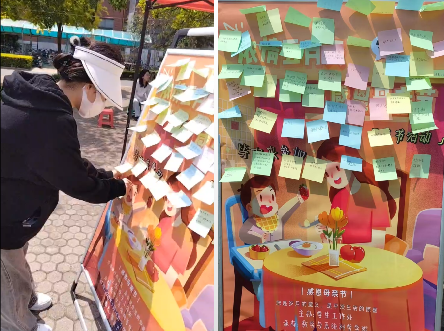 活动分为线上晒出“我与母亲的合影”及线下书写“送给妈妈的祝福”两个环节,从细微之处感悟母爱无声,搭建一个向母亲直接表达爱意的平台。同学们反响热烈,积极参与,一张张照片的背后,记录着和母亲一起度过的美好时光,一句句温暖的祝福,表达着对母亲最深切的爱意。不少同学表示:“因为含蓄内敛,所以从来没对妈妈说过‘我爱你’,本次活动很有意义,让我们有机会向母亲表达自己内心真挚的情感,愿天下所有母亲永远年轻美丽,健康平安!”