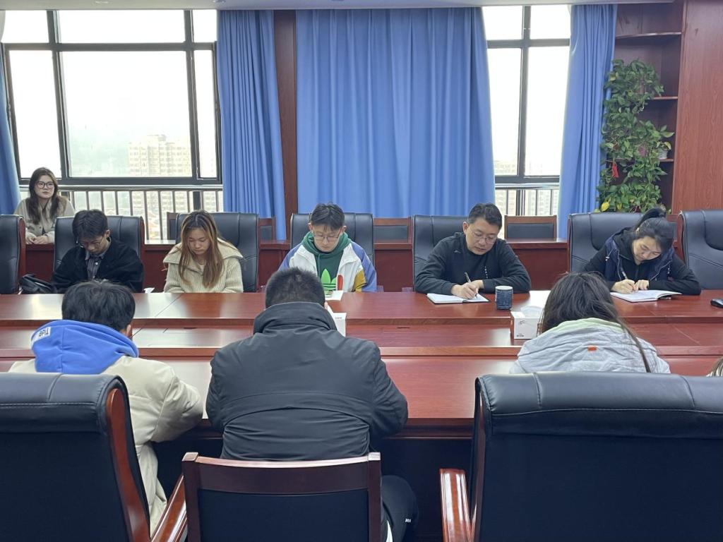 在工程实训大楼1601会议室组织召开2021级、2022级学生代表交流座谈会,学院党委副书记兼副院长刘辉,学工办主任、团委书记谢菲菲和辅导员诸葛祥玉参加会议。
