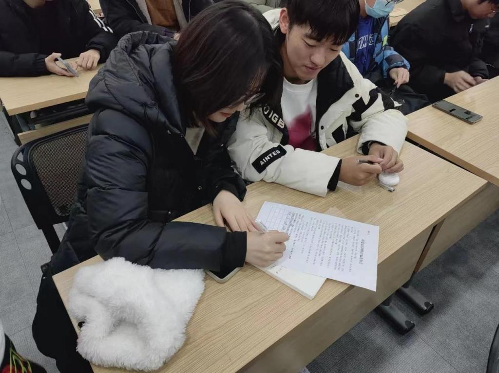 会上,辅导员带领学生一同观看防诈案例视频和宣传短片,学习防范电信网络诈骗宣传手册,向学生普及网络电信诈骗的常见手法和新型方式等,告诫同学们牢记“八个凡是”,用好七个反诈利器。随后,辅导员带领同学们认真学习了《中华人民共和国反电信网络诈骗法》部分章节,并组织学生现场签署“不参与电信网络诈骗犯罪承诺书”。