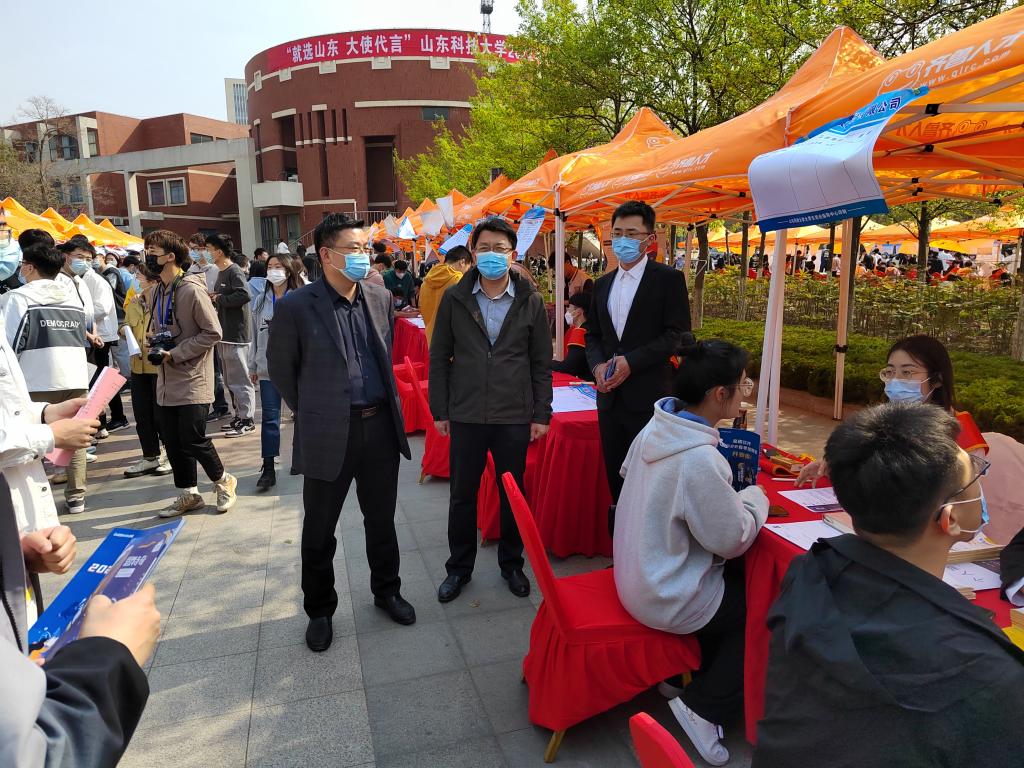 春季校园双选会在尤洛卡广场举行。学院党委书记徐明磊、党委副书记兼副院长刘辉、团委书记谢菲菲及各年级辅导员到现场交流参观。