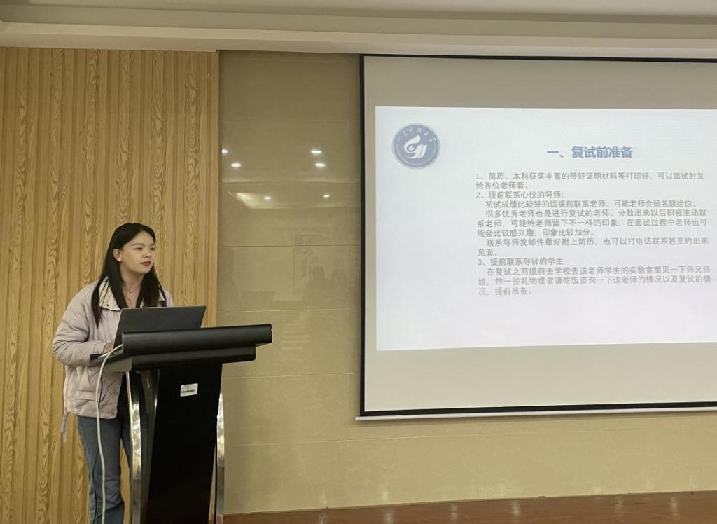 学霸助教团师生党支部在J9-433报告厅开展2023届考研复试经验交流会,党支部成员吴国潇、张鑫和孙荣璞为同学们分享考研复试经验。