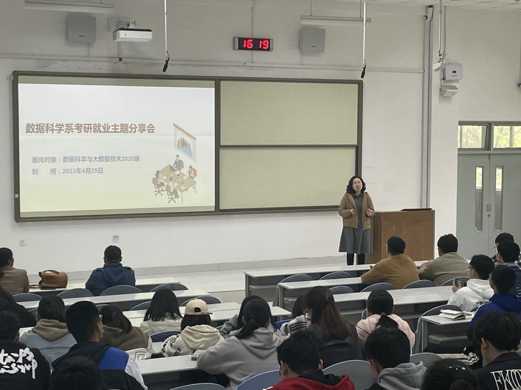 在J1-227召开大数据专业2024届毕业生考研就业交流会。大数据一系主任孙秋霞、大数据二系主任张玉林及150余名学生参加活动。