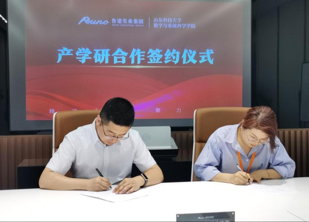 与青岛鲁诺实业集团签订产学研全面战略合作协议,副院长方泳代表学院参加会议。