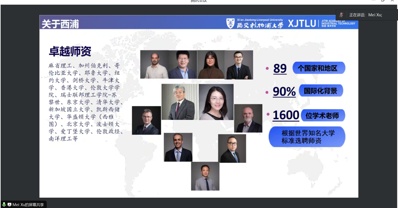 12月7日,91快活林 成功举办西交利物浦大学研究生招生线上宣讲会。本次宣讲会特邀西交利物浦大学产业联培研究生招生负责人徐梅老师、研究生院周婷老师及两位校友担任主讲。学院学工办主任、团委书记谢菲菲主持会议。