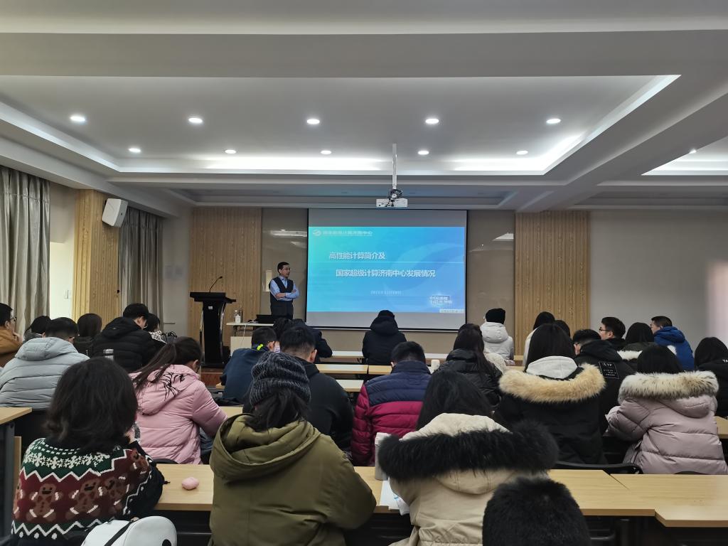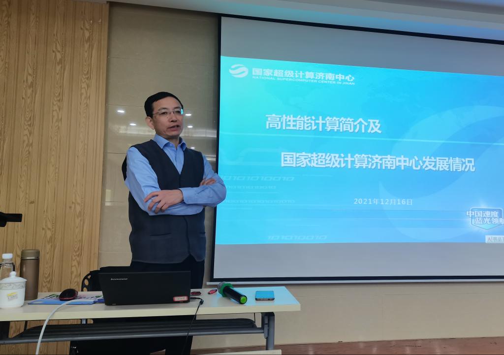 12月19日上午,计算数学78级校友、原齐鲁工业大学副校长(山东省科学院副院长)、国家超级计算济南中心特聘教授贺国平受邀在J9-433报告厅为我院师生做了题为“高新能计算概况和济南超级计算中心现状与规划”的专题报告。学院院长董焕河及师生代表120余人参加。报告会由董焕河主持。