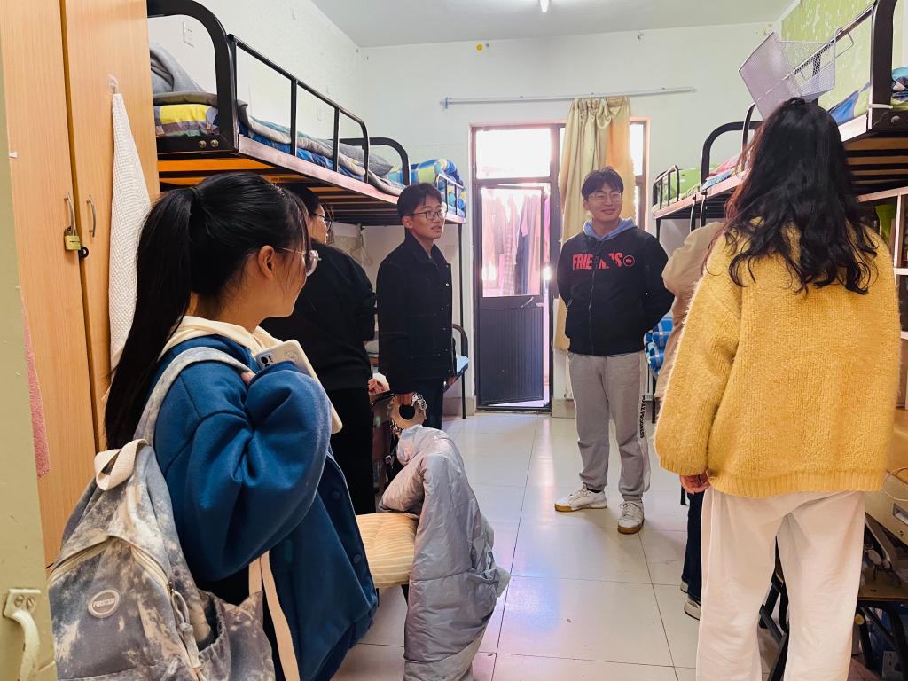 在学生公寓,辅导员与同学们亲切交谈,提醒同学们要遵守校园安全管理规章制度,坚持做好疫情防控工作,自觉维护宿舍安全、保持宿舍卫生整洁,积极营造安全、文明、健康、舒适的学习生活环境,携手共建文明校园。(通讯员:段雅君 谢菲菲)