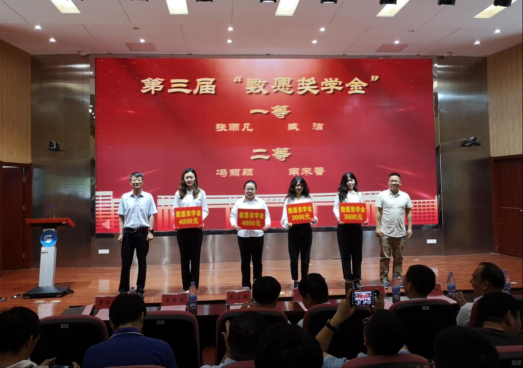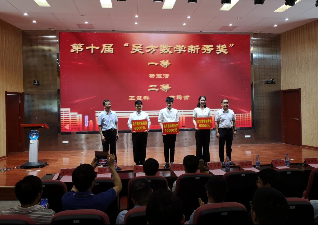 学院不断创新大学生先进典型的选树培育机制,扎实推进创先争优活动,充分发挥优秀学生的榜样示范带动作用。推进会上举行了学院第十届“吴方数学新秀奖”、第三届“数愿奖学金”、第一届“正则拔尖班奖学金”颁奖典礼。第十届“吴方数学新秀奖”一等奖获奖学生2017级数学与应用数学专业杨宏浩发表获奖感言。他鼓励同学们要学会养成知难而进、逆水行舟的能力,要学会养成不骄不躁、沉着理性的脾气,要充分珍惜现在的时光,在数学领域积极探索。