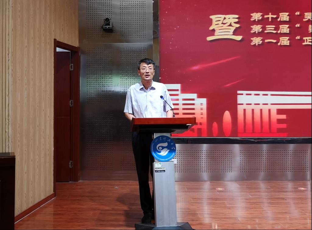 在J9-144报告厅隆重举行“三全育人”体系彩虹计划项目推进会。计算数学1978级校友、原齐鲁工业大学副校长(山东省科学院副院长)、“吴方新秀奖学金”理事会理事长贺国平,计算数学1978级校友、原国网山东省电力公司运营监测(控)主任刁柏青,校党委常委、副校长曾庆田,教务处处长乔卫国,学生工作处副处长孔环,合作发展处副处长王荣超,数学与应用数学2004级校友、嘉禾金元(北京)投资管理有限公司董事长、“数愿奖学金”发起人之一薛瑞文,数学与应用数学2005级校友、彩云科技CEO袁行远,91快活林