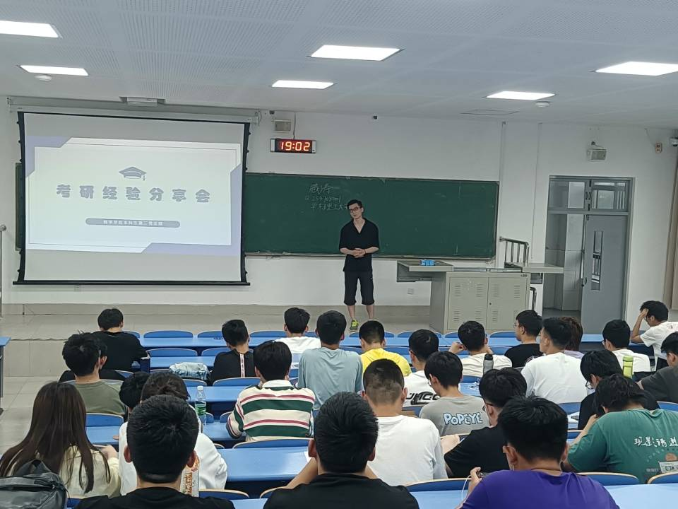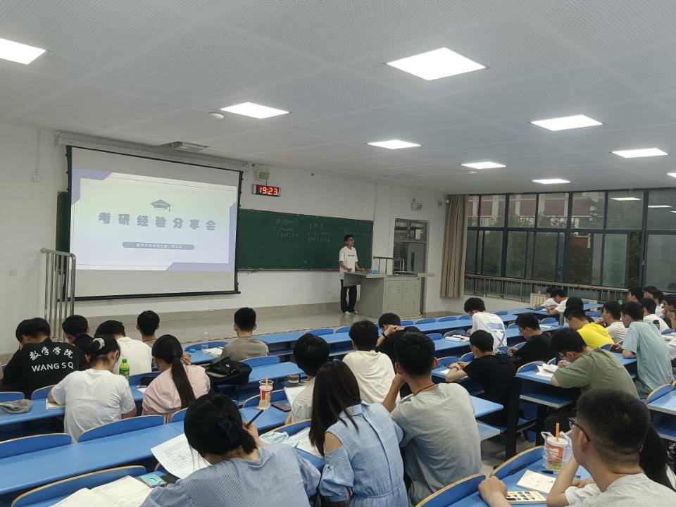 及跨考计算机相关专业的心得作了详细介绍,并分享了各自考研科目的高分秘籍,尤其强调英语学习的重要性。高万全建议报考数学的同学加强课本的复习,注重细节,不放过每一个定理、每一道题,在复习过程中利用好学习笔记与错题笔记,为自己的复习之路打下坚实基础。最后,五位学长与在场同学进行了交流讨论,耐心解答了同学们提出的问题。