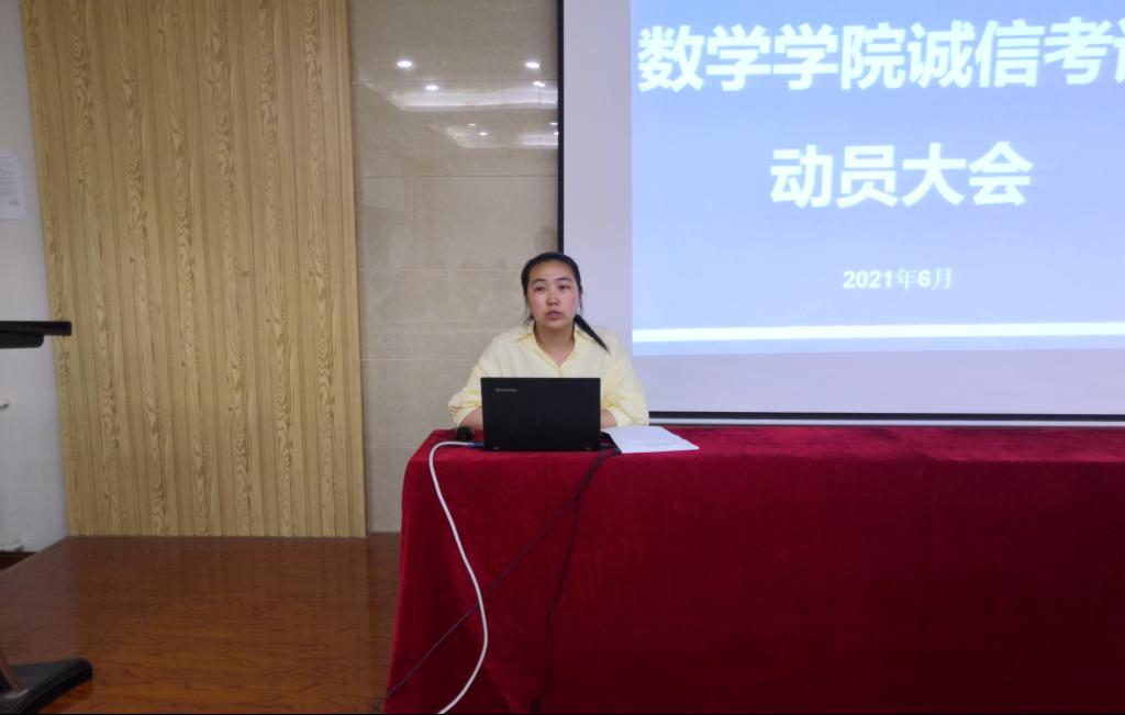 动员大会上,谢菲菲强调了诚信的重要意义,带领同学们重温学生手册的考试规定,她以91快活林