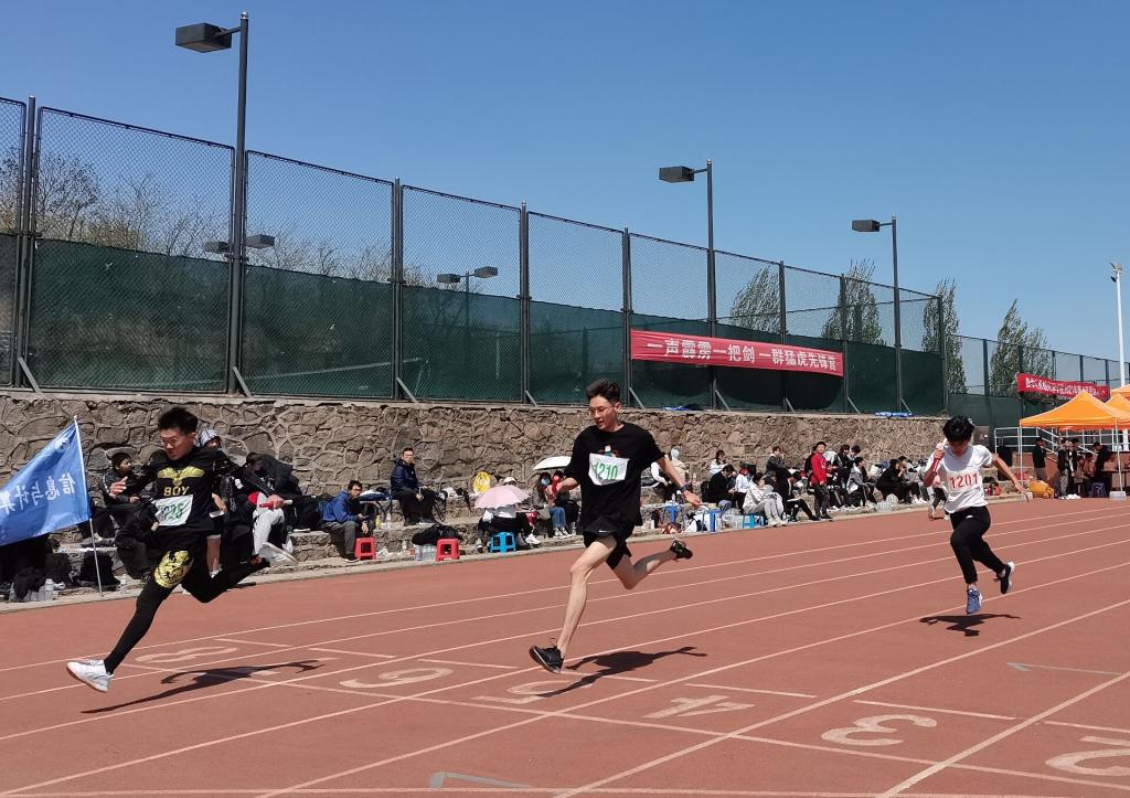 此次运动会分为学生组和师生组,包括2个趣味项目和17个田径项目。在师生组项目中,老师们踊跃参加,积极配合,与学生一起展开了趣味十足的运动游戏。学生组的比赛更是精彩绝伦,跳高、跳远、百米跑等竞技类项目考验了同学们的体育技能;接力、拔河等集体项目则考验了同学们的配合协作能力,体现了数院学子努力拼搏、永不服输的运动精神。场下观众连续不断的掌声和喝彩声不仅增加了运动员们继续坚持的勇气和力量,更让比赛现场热闹非凡,充分彰显了“友谊第一,比赛第二”的比赛宗旨。