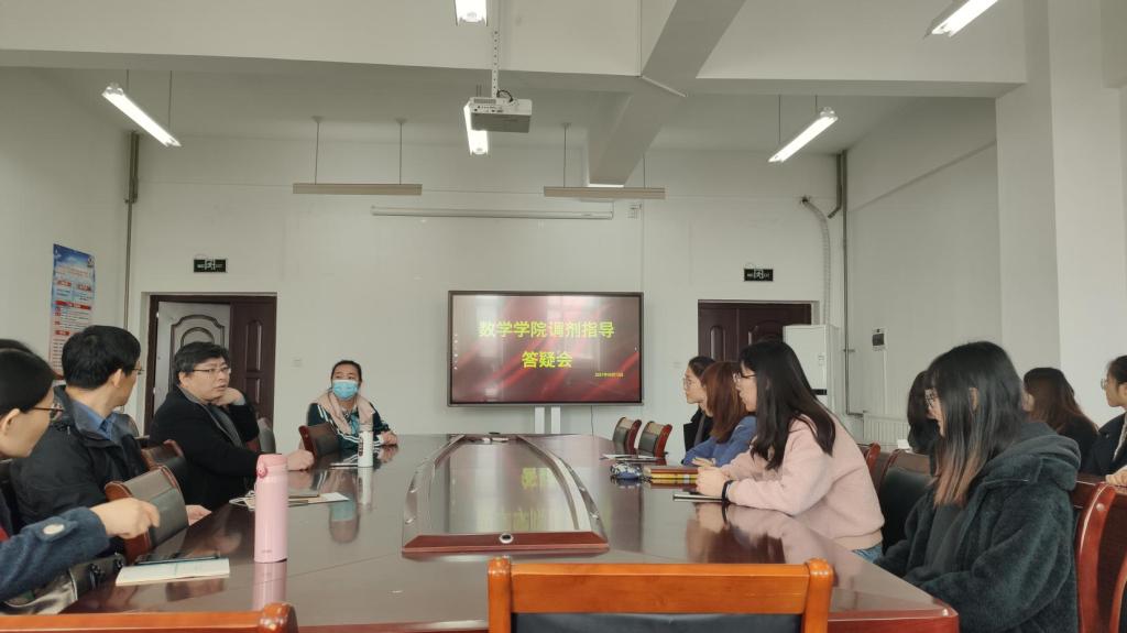 在J9-425会议室举办考研调剂指导答疑会,学院数学与应用数学系主任崔玉军、统计系主任王赢、系统科学系副教授陈明出席会议,会议由学院学工办主任、团委书记谢菲菲主持。