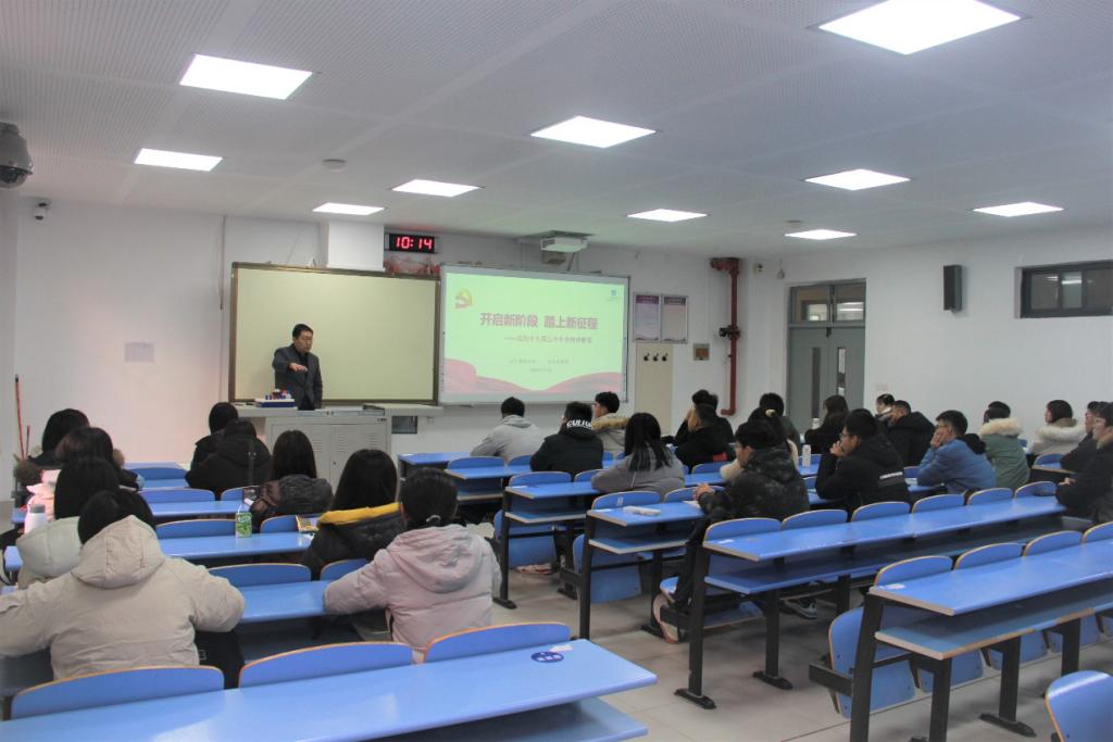 吴处长从党的十九届五中全会召开的重大意义、基本情况、主要精神及大学生学习宣传贯彻全会的建议等方面进行了系统宣讲。他指出,广大青年学子要牢记习近平总书记的教诲,贯彻新理念,融入新格局,建功新征程,奋力谱写无愧于伟大新时代的壮丽青春篇章。生动详实的案例、深入浅出的讲解,让同学们受益匪浅。会议最后,吴处长对同学们日后的学习生活提出了要求和建议,他希望同学们既要注重生活,也要努力学习,要认清基础学科的优势,沉下心来,一步一个脚印,实现从“量”到“质”的蜕变。