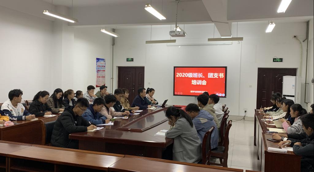 在J9-425会议室召开2020级班长、团支书工作培训会。学院党委副书记兼副院长刘辉,学工办主任、团委书记谢菲菲,2020级辅导员及2020级各班班长、团支书参加了会议。会议由刘辉主持。