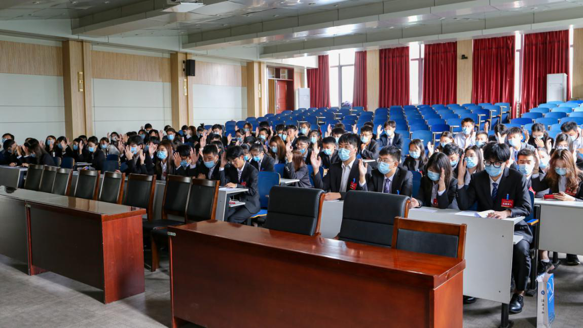 第一次学生代表大会暨第一次研究生代表大会在J13-蓝光报告厅隆重召开。学院党委书记徐明磊、党委副书记兼副院长刘辉、团委书记谢菲菲、辅导员代表出席会议,120名学生代表参加了会议。大会由院学生会主席靳保剑主持。