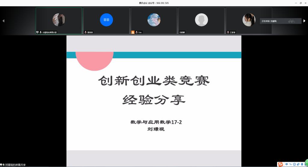 第五届山东省“互联网+”大学生创新创业大赛山东省银奖项目负责人刘璟现线上与同学们分享了自己参加“互联网+”大学生创新创业大赛所积累下来的宝贵经验,从材料撰写,PPT、视频制作到现场答辩以及现场问辩等环节进行了讲述与交流。刘璟现着还重为大家讲解了在答辩过程中需要注意的问题。本次分享会使学生对“创青春”、“互联网+”全国大学生创业大赛有了更加深刻的认识,也为学生备赛提供了重要参考。