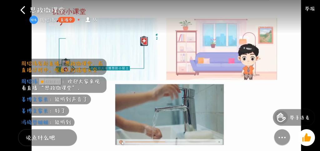 线上思政微课堂是学院党委认真贯彻落实习近平总书记关于新冠肺炎疫情防控工作的重要讲话精神以及党中央的决策部署,落实立德树人根本任务的重要举措之一。今后,学院将继续全力做好疫情防控与思政教育双推进,将“疫情危机”转化为 “教育契机”,全面拓展教育内容,全程突出思想教育,不断延伸立德树人阵地,助力学生健康成长成才。(通讯员:盖康)