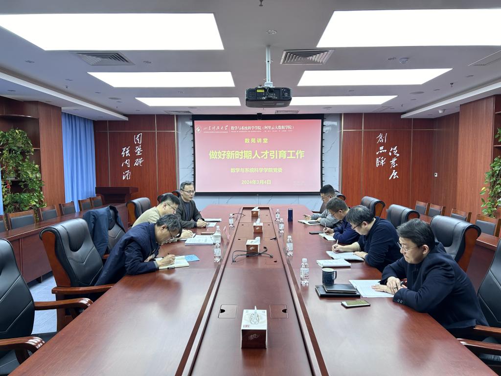 人才工作办公室副主任郭洪波受邀作题为《做好新时期人才引育工作》的报告,同时也作为学院“数苑讲堂”首讲。学院党委书记贾红果主持学习并讲话,学院党委理论学习中心组成员参加了学习。