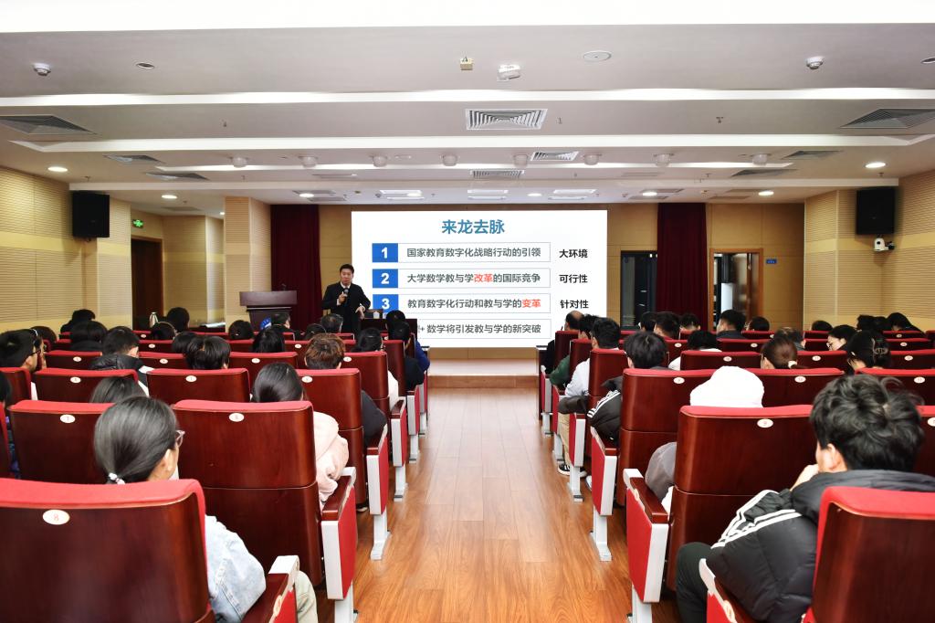 报告会上,郝志峰校长深入剖析了教育数字化战略的重要性和紧迫性,阐述了“AI” + 数学将引发教与学的新突破。他强调,大学数学的教与学要实现三个转向,从“学知识”转向“强能力”,革新育人理念;从“师生交互”转向“师/生/机三元交互”,创新教学模式;从“被动学习”转向“自主学习”,转变学习范式,推动数学教育数字化的高质量发展。