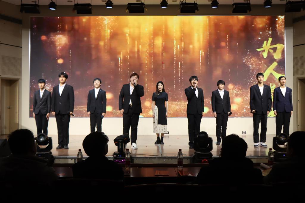在第三篇章“梦想启航再出发”中,丁嘉铭、陈鹏宇等带来的话剧表演《闪耀数学界的明星-陈景润》通过动人的情节演绎,向数学界的璀璨明星陈景润表达了深深的敬意;韦卓亚、孔亿佳等同学的朗诵《青春 梦想 未来》,则以饱满的热情,深情地描绘了青春的无限可能与美好,引发了在场师生的强烈共鸣。
