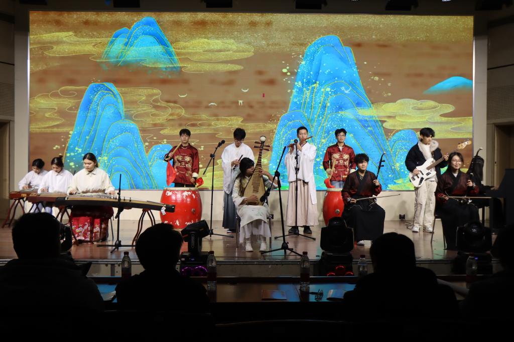 在第一篇章“数启新程绽芳华”中,王新萍、何家乐深情对唱《记得》,相慧君、赵晨演绎《不鼓自鸣》触动心弦;舞蹈《巴啦啦小魔仙+甜心格格》则尽显大学生青春活力。李欣越老师以其独特的嗓音深情演绎了《像我这样的人》,赢得了在场师生的阵阵掌声与喝彩。
