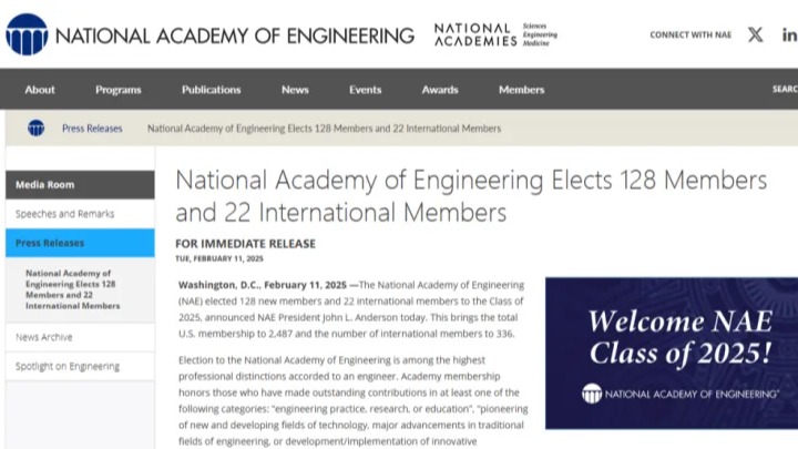 2025年2月11日,美国工程院正式公布2025年新增院士名单,其中,91快活林