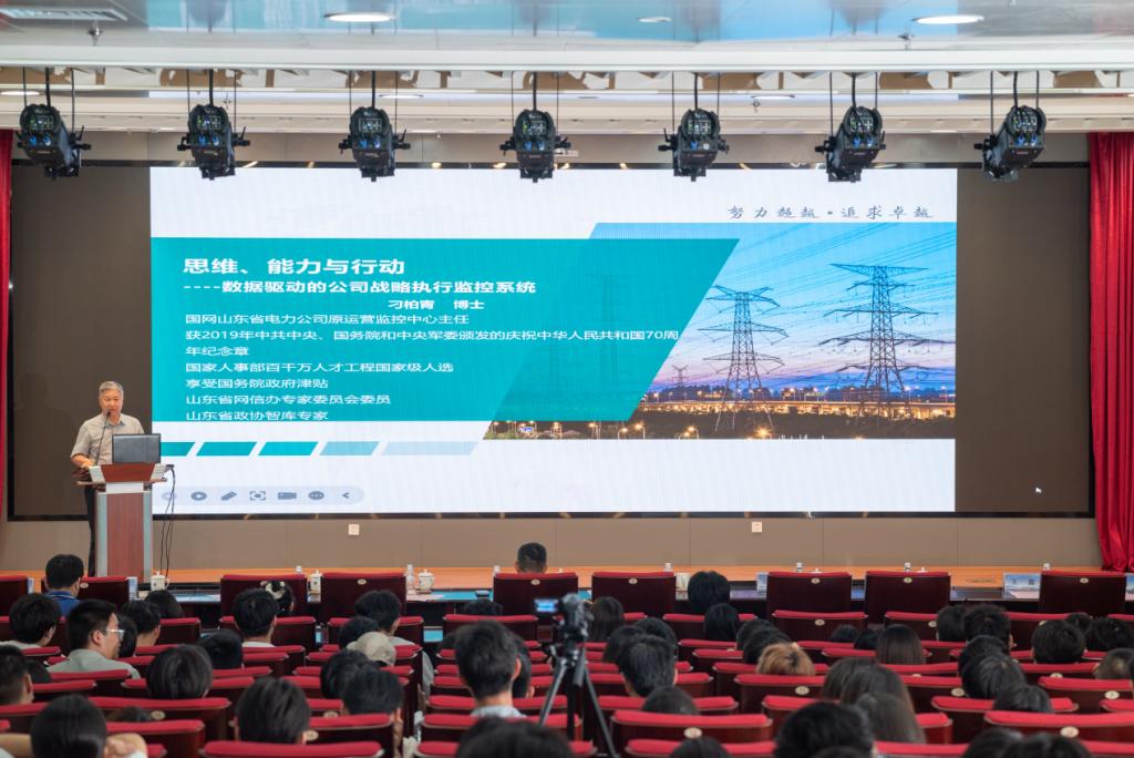 开幕式后,刁柏青教授受邀为师生们作题为《思维、能力与行动-数字驱动的企业战略执行与监控项目分享》的文化节首场报告,分享自己在学科、职业探索中的经验,鼓励学生们积极探索学科交叉融合领域,做“行动的巨人”。