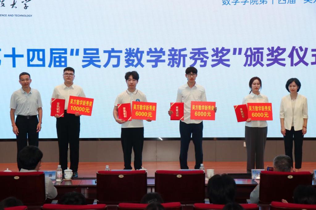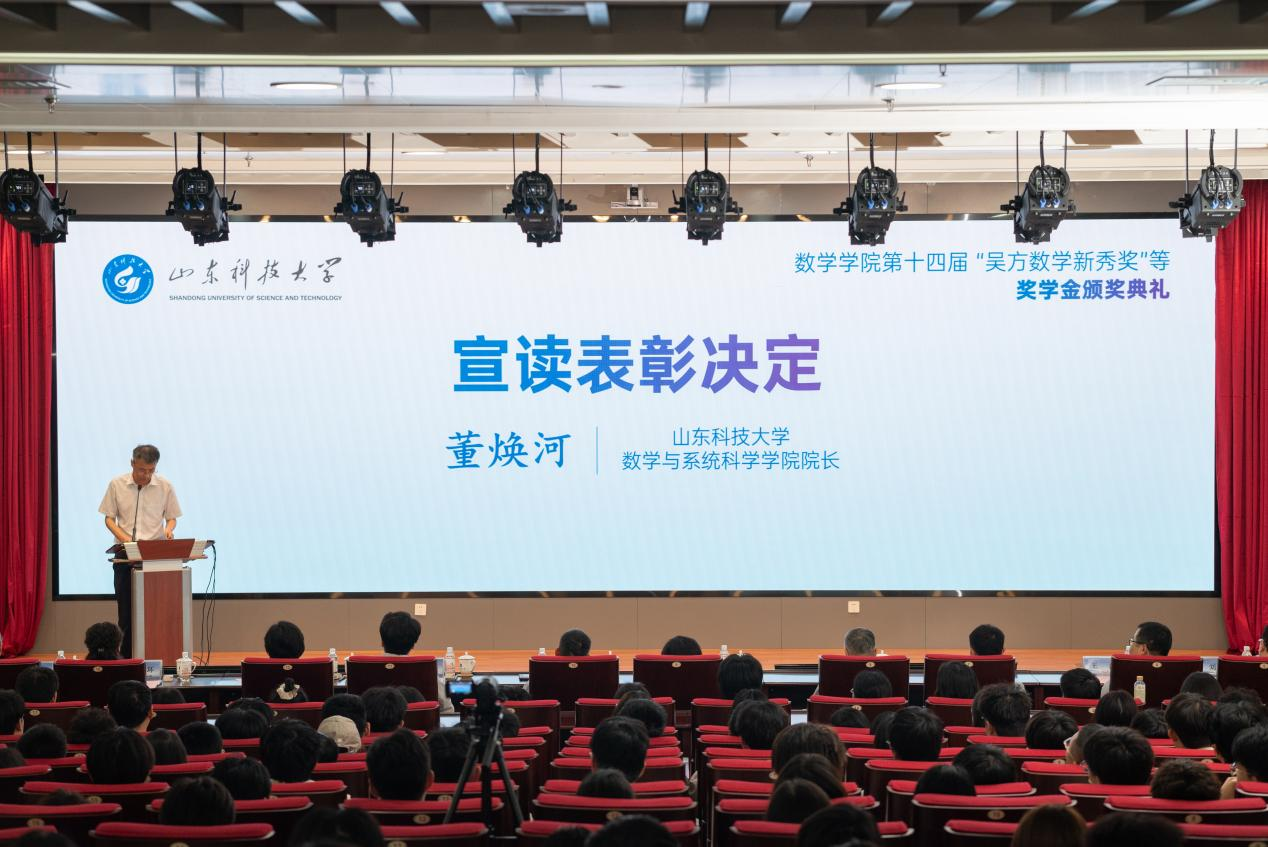 院长董焕河宣读了第十四届“吴方数学新秀奖”等奖学金表彰决定。与会领导为“吴方数学新秀奖”“青软奖学金”“正则拔尖班奖学金”获奖学生颁奖。“吴方数学新秀奖”一等奖获奖学生李天佑作代表发言。