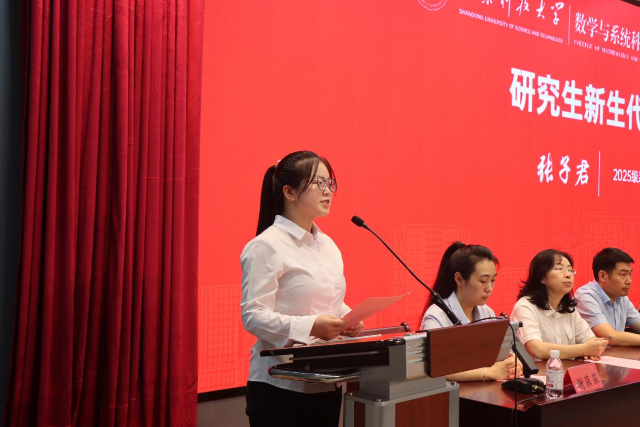 的坐标系中,展现数学学子的坚韧与担当,风采与力量。张子君则分享了研究生阶段的学习规划,详细讲明了求知心、恒心与同心的重要性,同时她代表全体2025级研究生宣言,将以严谨求证的态度破解学术难题,以开拓创新的勇气挑战学科前沿,用数学的严谨、大数据的力量,为强国建设注入青春动能!