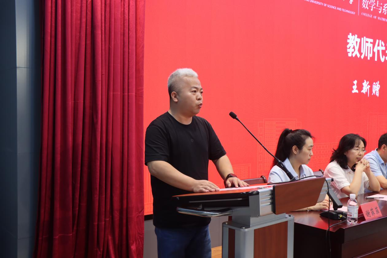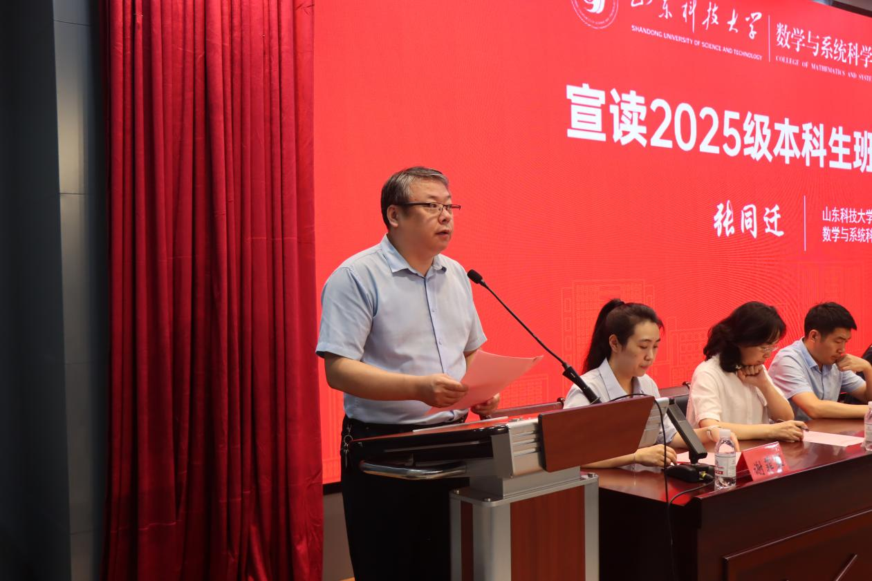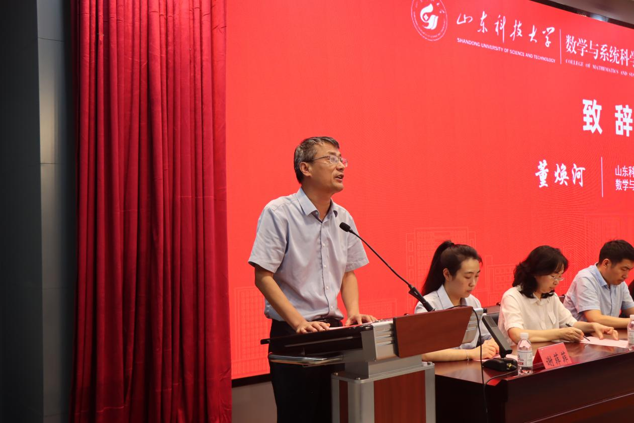 院长董焕河代表学院全体师生对新生的到来表示热烈地欢迎,鼓励新生们珍惜大学时光,努力学习,积极探索数学的奥秘,为未来的学术研究和职业发展打下坚实基础。他从发展历程、师资力量、专业设置、学科建设、杰出校友及奖学金设立等方面介绍了学院基本情况。同时,他对新生提出了四点期望:一是要做仰望星空的追梦者,于探索未知中探寻人生方向;二是要做脚踏实地的践行者,在攻克难题时锤炼意志品质;三是要做勇于创新的开拓者,让数学思维在创新实践中绽放华彩;四是要做胸怀家国的担当者,让青春在为祖国、为人民的奉献中焕发出绚丽光彩!